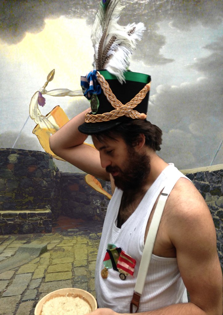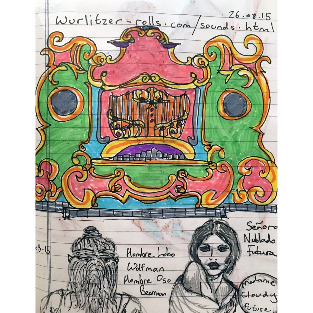 Because it is almost impossible not to look at this eclectic collection of the most weird and wonderful it would be difficult to separate this out from the experience of seeing the Hugo drawings. Particularly taxidermy, there are a lot of stuffed birds which creates a definite Hitchcock vibe to one particular corner. Bits of rusty machine parts left by the Germans when they left in 1945, a skip that was used to renovate an old monument on the common. A miniature of a restoration gentleman. Some old religious relics and a gold covered bible, and the mummified cats often found in the walls of old houses (witchcraft). A spell book and a live stream video installation.