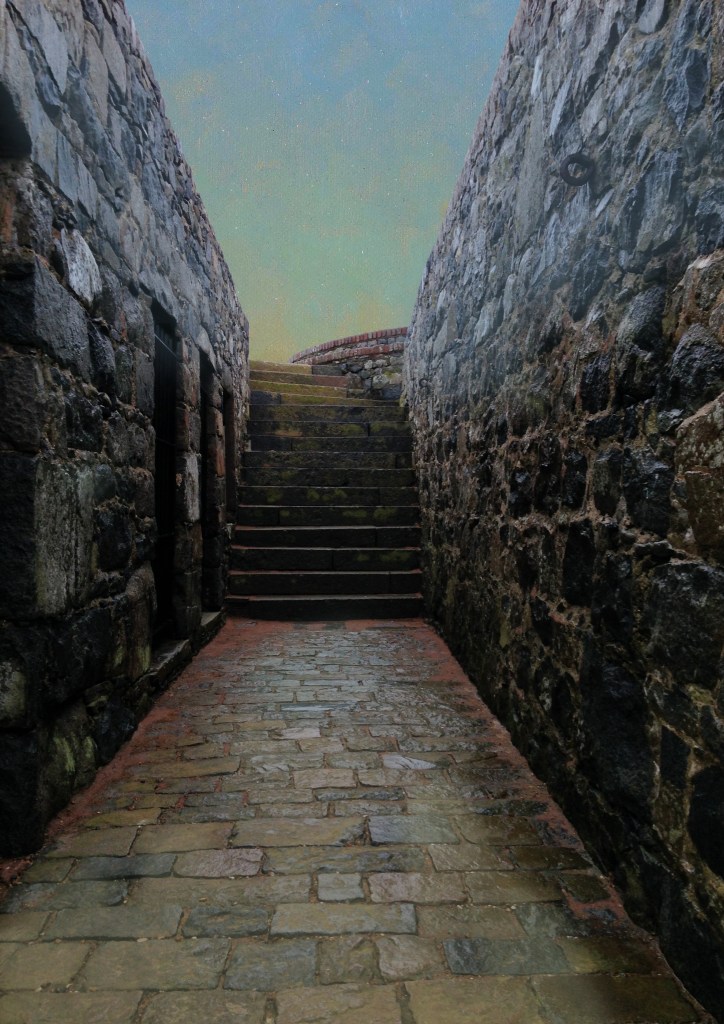 The exhibition of Victor Hugo’s drawings is held within the Guernsey Museum. The museum is a building with six gallery spaces, one learning room (the Discovery Room), a lecture theatre with capacity for 66 people, a cafe and a museum gift shop. Entrance to the exhibits is through the gift shop, the cafe can be accessed separately. Four of the gallery spaces hold permanent exhibitions showing (1) archeological finds and information about early man in Guernsey, (2) Guernsey witchcraft and folklore, (3) treasures donated from benefactors that lived locally, (5) and a fine art (painting) exhibit with around 200 paintings mainly from local artists dating from classical to contemporary. There are also a small amount of works on loan, currently a Damien Hirst and a Yayoi Kusama. The remaining galleries hold temporary exhibits. All these spaces interlink and it would be difficult to go into one exhibit without attention being drawn to other rooms.